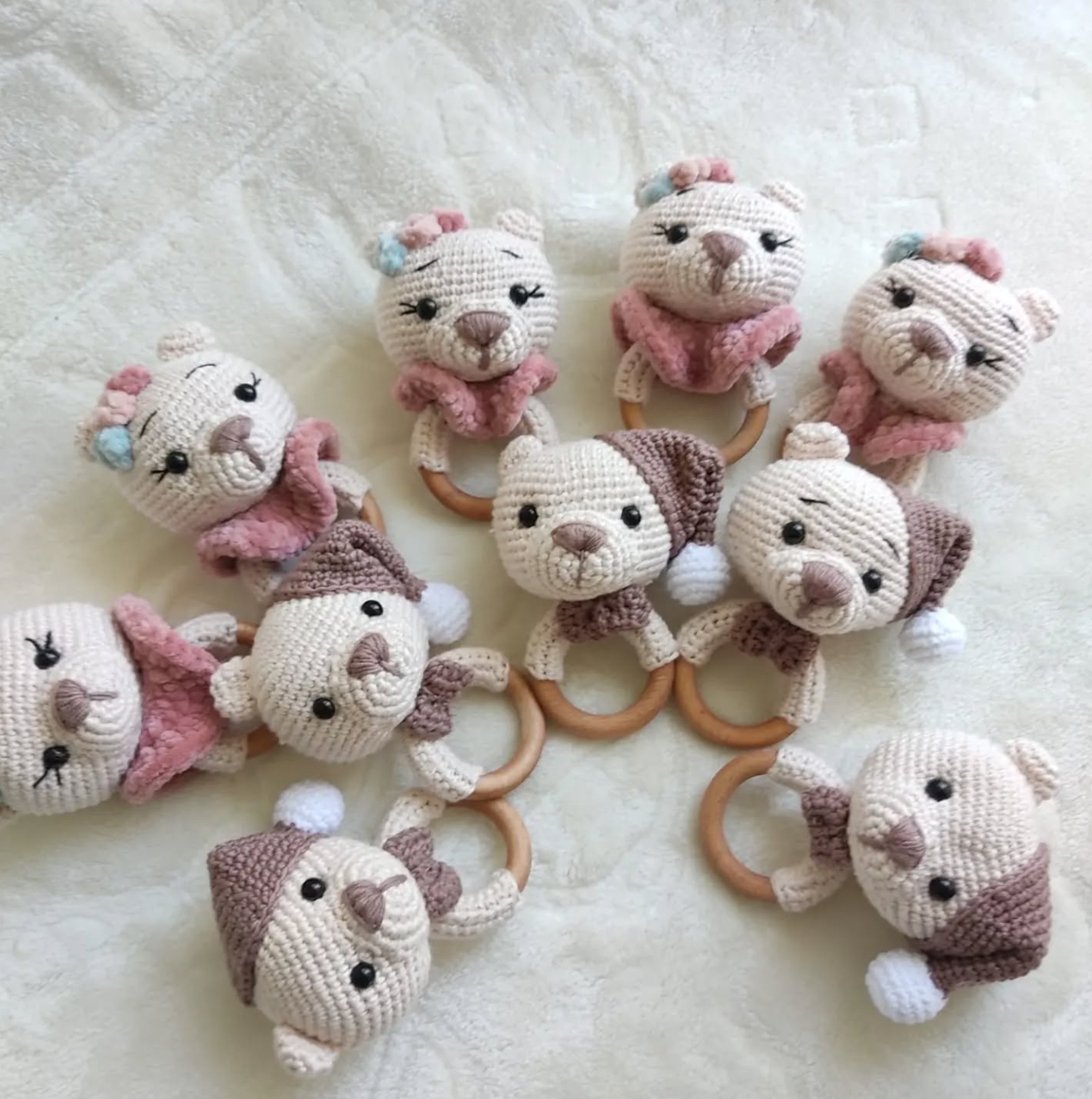 Les hochets faits main sont des jouets délicatement confectionnés, alliant sécurité, créativité et douceurs, ces hochets sont des accessoires ludiques qui stimulent la motricité et la curiosité des bébés
